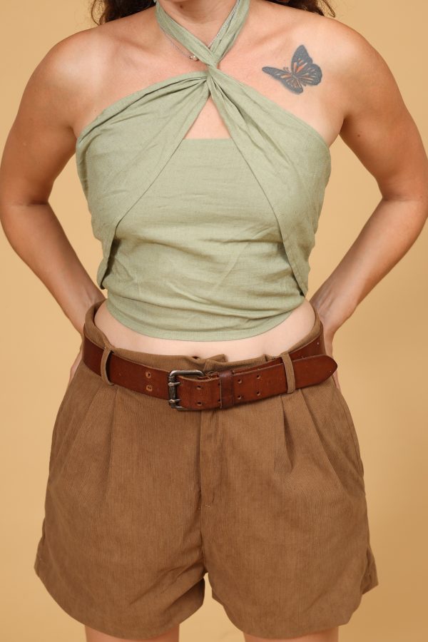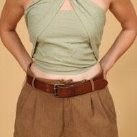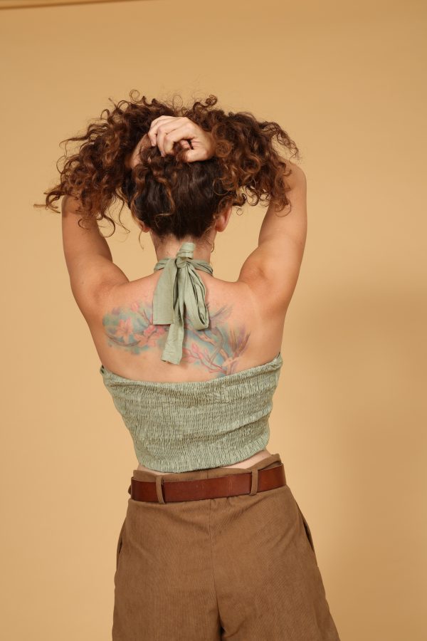גופיית סטרפלס עשויה תערובת קלילה של פשתן ויסקוזה (25% פשתן, 75% ויסקוזה).